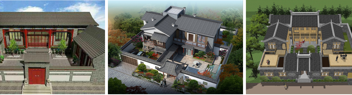 中国四合院别墅依东西向的胡同而坐北朝南,大门辟于宅院东南角“巽”位。四合院中间是庭院,院落宽敞,庭院中植树栽花,备缸饲养金鱼,是四合院布局的中心,也是人们穿行、采光、通风、纳凉、休息、家务劳动的场所。