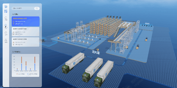 智慧仓储管理将可以通过 2D 组态,三维仿真形态的方式展现出物流中心的全场景管理交互系统,方便上游供应方的大批量货物进行集中仓库储存、管理等作业,并能接受处理下游用户的订货信息的一个 3D 智慧物流可视化仓储管理系统可视化。
